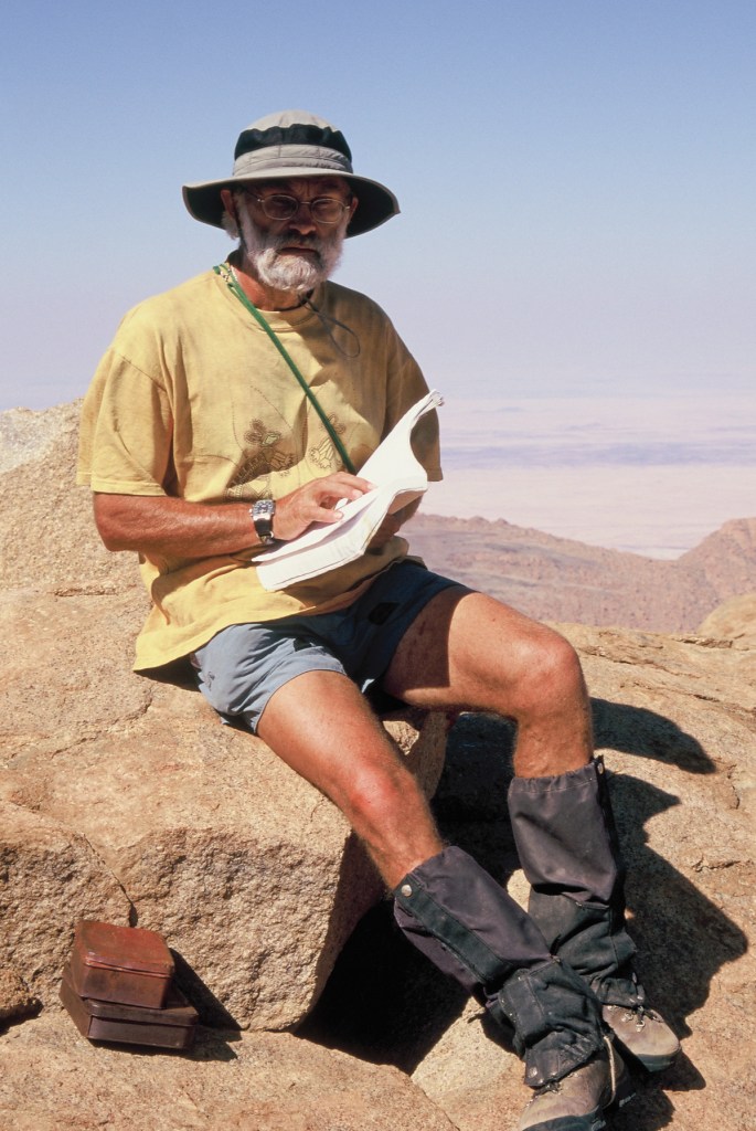 However, though my work in biological control of weeds, I got to know Stefan Neser, a biocontrol scientist from Pretoria and an outstanding naturalist. I talked with him and his wife, Ottilie, about going back to Namibia and maybe climbing Brandberg. Ottie followed up our idea and arranged for a group of relatives and colleagues to accompany us. Ottie’s cousin, Erica (an artist), and her husband Neerthling, an entomologist running a pest control business (also an expert on large mammals) joined us as well as Michael, another entomologist from Pretoria and Tharina, a spider expert from Windhoek, the capital of Namibia.